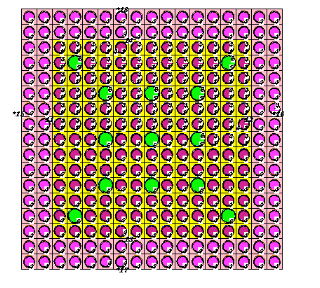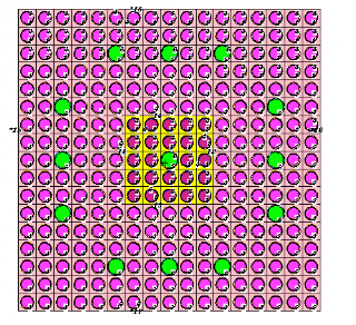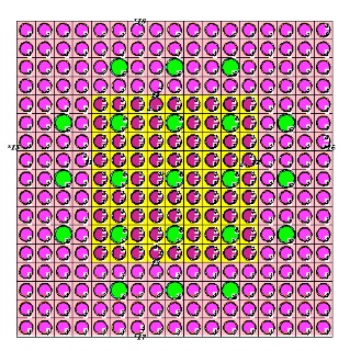 Hvorfor skjer dette?! Når jeg forandrer størrelsen på "SEED" (det gule området) så forsvinner kontrollstavene (de grønne sirklene), og jeg kan jo ikke gjøre simuleringer på brenselsassemblies som liksom skal være de samme, men med færre kontrollstaver enn det det skal være.