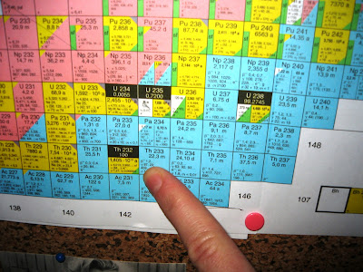 - Thorium. Element nummer 90, fins i naturen med 142 nøytroner, som thorium-232. Lett radioaktivt; sender i hovedsak ut alfastråling.
