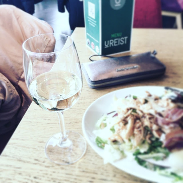 - my fuel when I got to Stavanger airport yesterday: Chablis and Cæsar salad - as I started going through all the receipts (a lot!) rom just two days travelling -