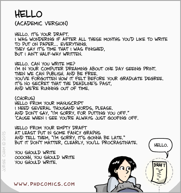 Just found this text at PHD Comics - sort of like the story of my life these days...:P My empty drafts are my second article, my third article, and my actual thesis. (OMG!)
