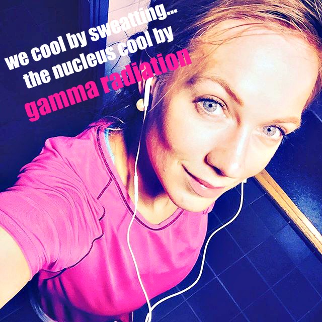 I've spent most of today reading about "prompt fission gamma rays", which is the topic of my poster (planning on finishing, and submitting, my abstract tomorrow). It maaaaay be that I'm calling gamma radiation for nuclear sweat … 😀 Don’t know with you, but I mean, if a nucleus is excited, or “hot” (as my nucleus is), it cools by emitting gamma rays - sounds like sweat to me 😉