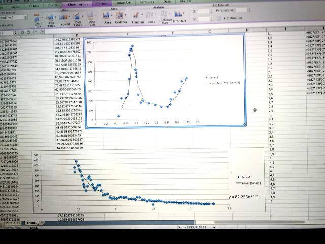 På bildet under prøver jeg å bruke data fra en gammel artikkel (eldre enn meg) for å prøve å finne ut av hvordan nøytronene ser ut i våre detektorer, og hvordan vi skal trekke fra et visst antall av tellingene våre. Håper veldig at det går! (Hvis ikke er jeg alvorlig usikker på hvordan det kommer til å gå; hvis jeg ikke kan forsvare skikkelig at vi klarer å ta hensyn til hvor mye av vpre data som er nøytroner, og hvor mye som er gammastråling, tviler jeg sterkt på at jeg har en tredje artikkel for publisering, og hvis jeg ikke har det så er jeg veldig usikker på hva so skjer med doktorgraden...:/ )